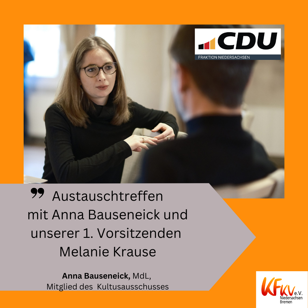 Heute war unsere 1. Vorsitzende Melanie Krause im Gespräch mit Frau Anna Bauseneick . Es war ein sehr konstruktives Gespräch. Wozu wir in der kommenden Zeit mehr darauf eingehen werden.